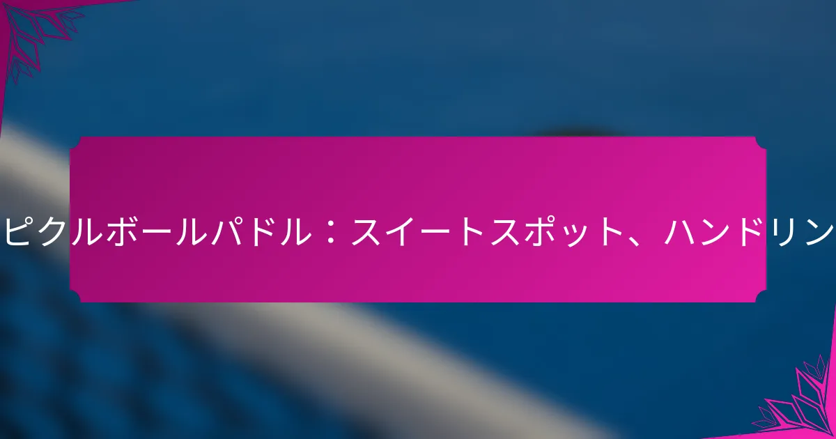 エロンゲートピクルボールパドルは、プレイヤーに優れたリーチとパワーを提供するように特別に設計されており、特定のプレイスタイルに最適です。標準的なパドルよりも長い形状を持つこれらのパドルは、ボールを打つためのより大きな打撃面を提供し、プレイヤーがより広い範囲をカバーし、効果的に相手に挑戦できる強力なショットを生成することを可能にします。 エロンゲートピクルボールパドルとは? エロンゲートピクルボールパドルは、ゲームプレイ中にプレイヤーにリーチとパワーを増加させるために設計された、長い形状の専門的なパドルです。これらのパドルは通常、標準的なパドルを超える寸法を持ち、特定のプレイスタイルのパフォーマンスを向上させます。 エロンゲートパドルの定義と寸法 エロンゲートパドルは、従来のパドルと比較して、長いハンドルと広いフェイスが特徴です。エロンゲートパドルの標準的な寸法は、通常15.5インチから17インチの長さと、7.5インチから8.5インチの幅です。このデザインにより、プレイヤーはより多くのレバレッジとリーチを生成でき、さまざまな角度からボールを打つことが容易になります。 長さが増すことで、プレイヤーはコート上でより広い範囲をカバーでき、特に速いペースのゲームでは有利です。追加の打撃面積は、スイートスポットを大きくし、ボールコントロールとパワーを向上させるのにも寄与します。 エロンゲートパドルを区別するデザイン特徴 改善されたグリップと操作性のための長いハンドル より大きな打撃面のための広いフェイス バランスを向上させるための強化された重量配分 より多くのスピンとコントロールを可能にするユニークな形状 これらのデザイン特徴により、エロンゲートパドルはパワーと精度に依存する攻撃的なプレイヤーに適しています。長いハンドルは、強力なショット中の安定性を高めるために、両手でのグリップを可能にします。 エロンゲートパドルに使用される一般的な材料 エロンゲートパドルは通常、複合材、グラファイト、木材など、さまざまな材料で作られています。複合材パドルは、パフォーマンスを最適化するために異なる材料を組み合わせることが多く、耐久性と軽量特性のバランスを提供します。 グラファイトパドルは、その反応性とパワーで知られていますが、木製パドルはより伝統的な感触を提供します。材料の選択は、パドルの重量、バランス、全体的なプレイアビリティに大きく影響し、プレイヤーが自分のスタイルに合ったパドルを選択できるようにします。 パドル形状の歴史的背景と進化 パドル形状の進化は、技術の進歩とプレイヤーの好みに影響されてきました。最初は、ピクルボールパドルは木製で作られており、堅実だが重い選択肢を提供していました。スポーツが人気を集めるにつれて、メーカーはパフォーマンスを向上させるために、より軽量の材料や異なる形状を試すようになりました。 エロンゲートパドルは、特に競技者の間で、より大きなリーチとパワーの必要性に応じて登場しました。年月が経つにつれて、ブランドはデザインを洗練させ、今日の現代的なエロンゲートパドルへとつながりました。 エロンゲートパドルを製造する人気ブランド いくつかの主要ブランドが、高品質のエロンゲートピクルボールパドルを専門に製造しています。著名なブランドには、Selkirk、Paddletek、Onixがあり、それぞれ異なるスキルレベルやプレイスタイルに合わせたパドルのラインナップを提供しています。 これらのブランドは、革新とパフォーマンスへのコミットメントで認識されており、プレイヤーがエロンゲートパドルにおける最新の技術とデザイン特徴にアクセスできるようにしています。信頼できるブランドを選ぶことで、全体的なプレイ体験が向上し、プレイヤーがコートで優れたパフォーマンスを発揮するためのツールを提供します。 エロンゲートパドルはどのようにリーチを向上させるのか? エロンゲートピクルボールパドルは、ボールを打つための長い打撃面を提供することでリーチを向上させ、プレイヤーがより遠くからショットをつなげることを可能にします。この長さの増加は、プレイヤーがコート上でより広い範囲をカバーできるため、守備的および攻撃的なプレイの両方を改善することができます。 パドルの長さがボールのリーチに与える影響 ピクルボールパドルの長さは、プレイヤーがどれだけリーチを伸ばせるかに直接影響します。長いパドルは通常、約16インチから18インチの範囲で、標準的なパドルは通常15インチから16インチです。この追加の長さにより、プレイヤーは足をあまり動かさずに、より遠くのボールを打つことができます。 エロンゲートパドルを使用することで、プレイヤーはより良いポジショニングを維持しながら、挑戦的なショットを返すことができます。これは、ネットでの速い交換中に特に有利であり、迅速な反応
