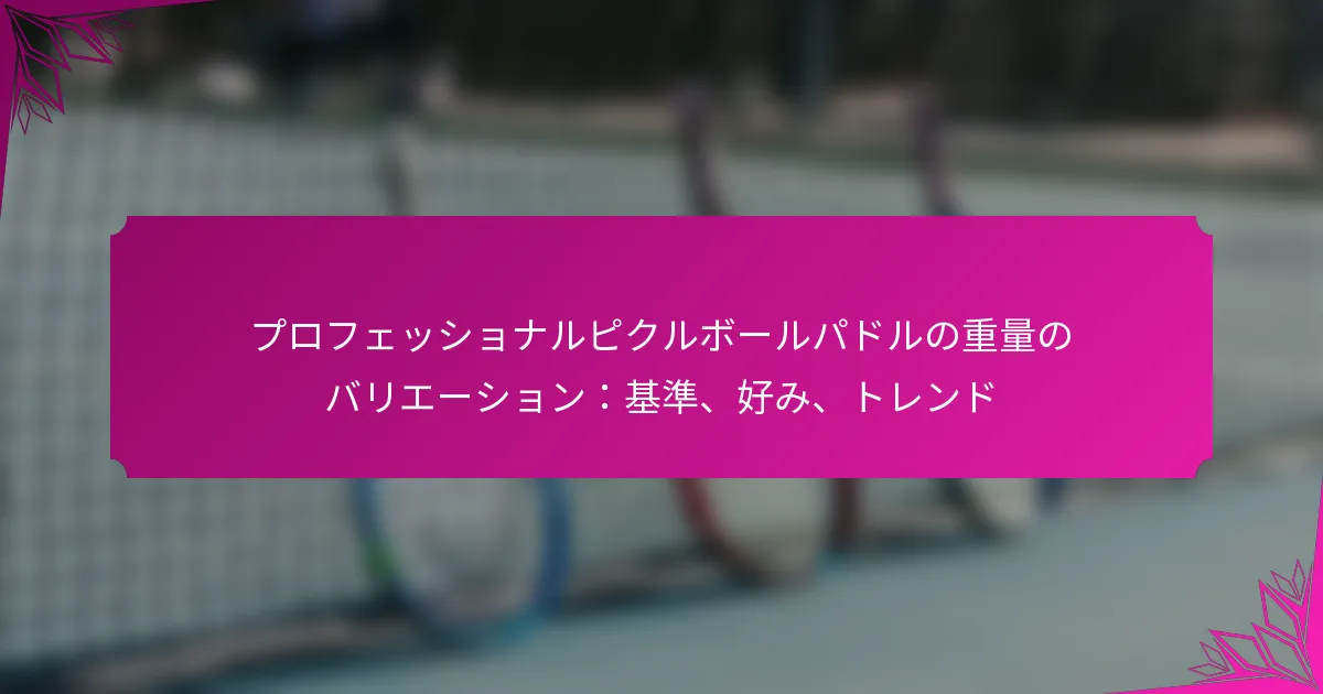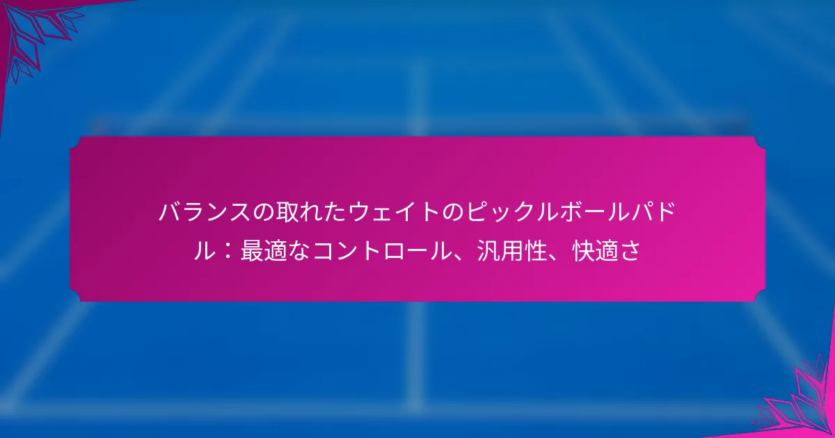 バランスの取れた重量のピックルボールパドルは、重量の均等な分配を提供するように設計されており、ゲームプレイ中のコントロール、汎用性、快適さを大幅に向上させます。通常、7.5オンスから8.5オンスの間の重さで、これらのパドルはプレイヤーがパワーと精度を維持しながら容易に操作できるようにし、すべてのスキルレベルのプレイヤーにとって優れた選択肢となります。 バランスの取れた重量のピックルボールパドルとは? バランスの取れた重量のピックルボールパドルは、プレイ中のコントロール、汎用性、快適さを向上させるために、重量の均等な分配を提供するように設計されています。これらのパドルは通常、7.5オンスから8.5オンスの間の重さで、プレイヤーがパワーと精度を維持しながら効果的に操作できるようにします。 ピックルボールパドルにおけるバランスの取れた重量の定義 バランスの取れた重量とは、パドル全体に質量が分配されていることを指し、手に持ったときに安定感と扱いやすさを感じられるようにします。バランスの取れたパドルは、パワーとコントロールの組み合わせを可能にし、さまざまなプレイスタイルに適しています。このバランスは、パフォーマンスを犠牲にすることなくソフトショットとパワフルなドライブの両方を実行したいプレイヤーにとって重要です。 バランスの取れた重量のパドルの構成要素 バランスの取れた重量のピックルボールパドルには、いくつかの重要な構成要素があります: コア素材:コアはポリマー、アルミニウム、またはノメックスで作られることがあり、それぞれがパドルの重量と感触に影響を与えます。 フェイス素材:表面素材は、通常は複合材またはガラス繊維で、耐久性とボールの反応に影響を与えます。 グリップサイズ:快適なグリップサイズはコントロールを維持し、長時間のプレイ中の疲労を軽減します。 エッジガード:エッジガードはパドルを損傷から保護し、最小限の重量を追加します。 バランスの取れた重量がゲームプレイに与える影響 パドルのバランスの取れた重量は、ショットの精度を向上させ、手首や腕への負担を軽減することによって、ゲームプレイに大きな影響を与えます。プレイヤーは迅速な反応や調整を行うことができ、難しいショットを返すのが容易になります。さらに、バランスの取れたパドルはスピンや配置のコントロールを向上させ、戦略的なプレイにとって重要です。 たとえば、バランスの取れたパドルを使用するプレイヤーは、均等な重量分配が迅速な手首の動きをサポートするため、ディンクやボレーを行うのが容易であることに気づくかもしれません。逆に、重すぎるまたは不均衡なパドルは、疲労やパフォーマンスの低下を引き起こす可能性があります。 ピックルボールパドルの分類 ピックルボールパドルは、その重量とバランスの特性に基づいて分類できます。一般的に、パドルは軽量、中重量、重量の3つの主要なカテゴリに分けられます。バランスの取れた重量のパドルは通常、中重量カテゴリに属し、パワーとコントロールの妥協点を提供します。 軽量パドルは通常7.5オンス未満で、扱いやすいですが、パワーが不足することがあります。重量パドルは8.5オンスを超え、より多くのパワーを提供しますが、扱いにくくなることがあります。パドルの重量の選択は、プレイヤーのスタイル、力、スキルレベルによって異なることがよくあります。 バランスの取れたパドルの一般的な別名 バランスの取れた重量のパドルは、ピックルボールコミュニティでさまざまな名前で呼ばれることがよくあります。一般的な別名には以下が含まれます: オールラウンドパドル:これらのパドルは、さまざまなプレイスタイルに対応するために設計されています。 ミッドウェイトパドル:その重量カテゴリを直接指し、バランスの取れた性質を強調しています。 コントロールパドル:ショットの精度とコントロールを向上させる能力を強調しています。 これらの用語を理解することで、プレイヤーは自分のニーズに合ったパドルを選択する際に情報に基づいた決定を下すことができます。 バランスの取れた重量のパドルはどのように最適なコントロールを提供するのか? バランスの取れた重量のパドルは、重量を均等に分配することによってコントロールを向上させ、プレイヤーがプレイ中に効果的に操作できるようにします。このデザインは、正確なショットを実行するのに役立ち、初心者と上級者の両方がコート上での精度と快適さを維持しやすくします。 コントロールに対する重量分配の影響 パドルの重量分配は、プレイ中の感触に大きく影響します。バランスの取れたパドルは通常、重量が均等に分散されており、より良い安定性とコントロールを実現します。この安定性により、プレイヤーはグリップやスイングの精度を失うことなく迅速な調整を行うことができます。 重量がハンドルやヘッドに集